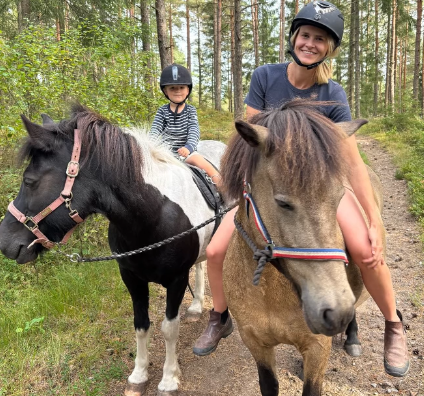 Tidigare dressyrryttare men nu islandshästar med en annan inställning till hästlivet – utan höga krav och prestation, ännu mera kärlek, relation och sist men inte minst – alltid må bra och ha roligt tillsammans!