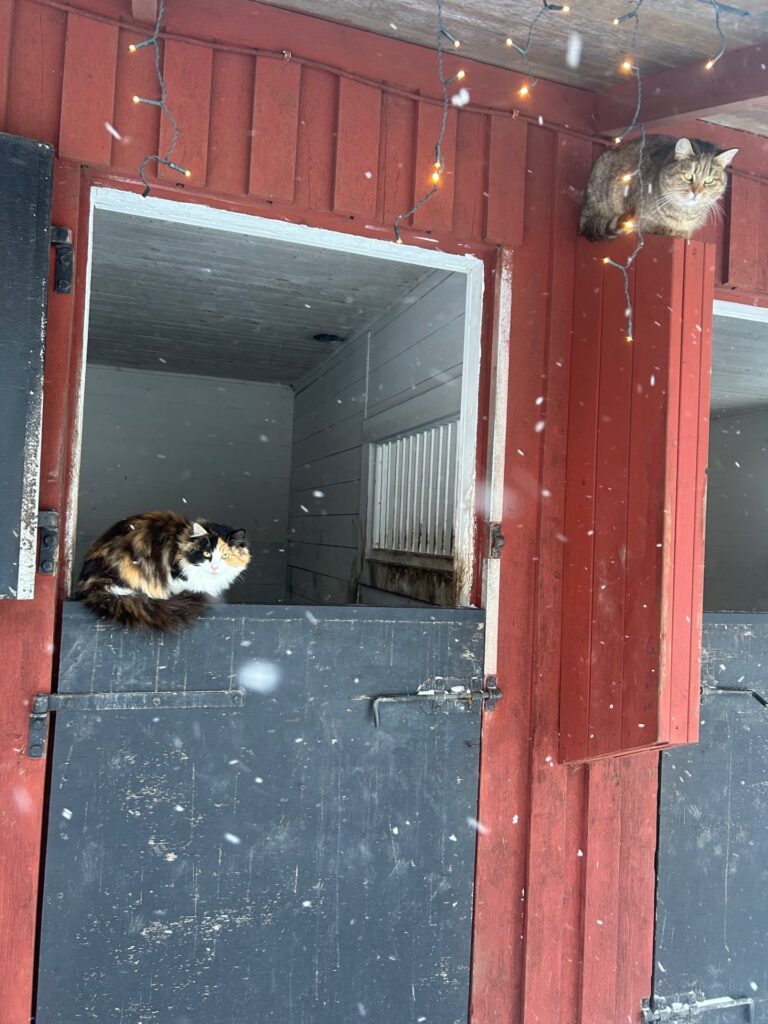 De mest sociala & barnvänliga katterna vi känner! Gunnel är största jägaren på gården och Kattis den mest lekfulla. De älskar livet som stallkatter har ett stort revir som de strövar omkring fritt på, gillar även att klättra i träd eller hoppa in i bilar, så man får passa sig så man inte får en misse eller två med sig hem..